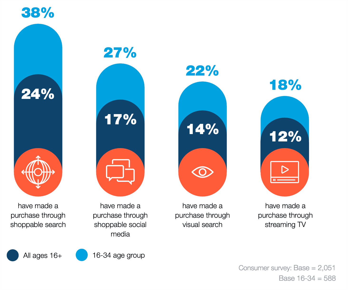 64% of consumers who have used shoppable ads say they enable them to access a larger range of channels and platforms to shop from22. Shoppable advertising is a unique experience, presenting people with new and entertaining ways to discover and purchase products on the channels they already use.