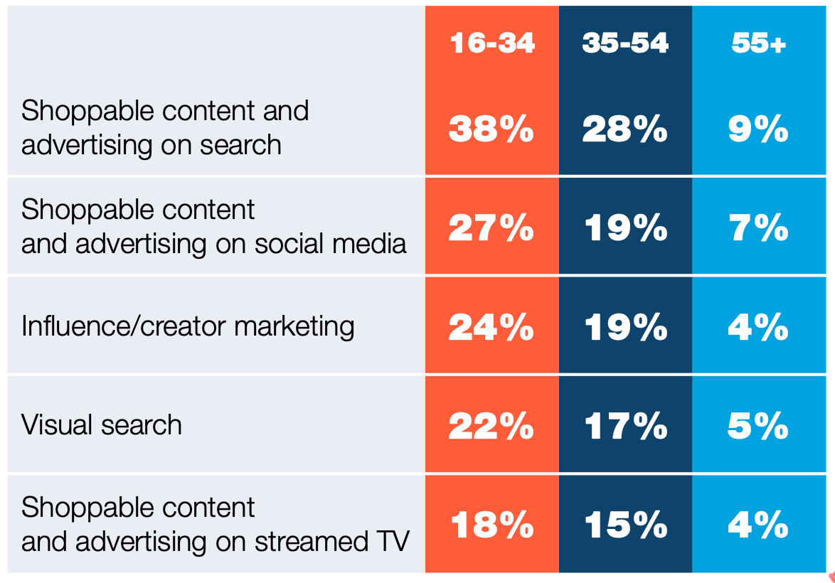 Uptake of shoppable ads by age group33:
